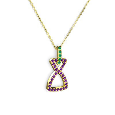 Kök zümrüt ve ametist 18 ayar altın kolye (40 cm gümüş rolo zincir)