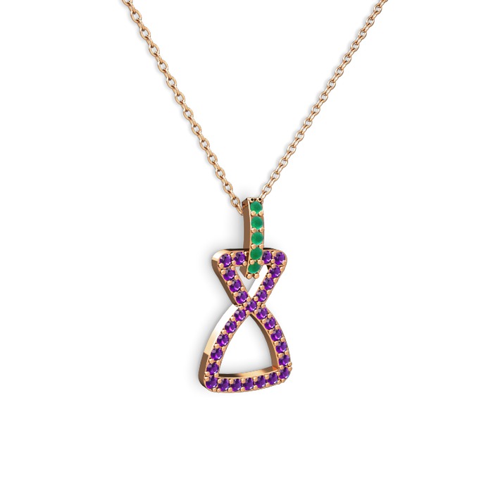 Kök zümrüt ve ametist 18 ayar rose altın kolye (40 cm rose altın rolo zincir)