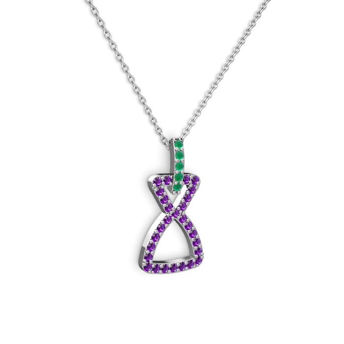Kök zümrüt ve ametist 8 ayar beyaz altın kolye (40 cm beyaz altın rolo zincir)