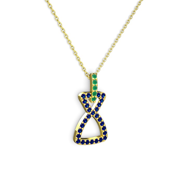Kök zümrüt ve lab safir 18 ayar altın kolye (40 cm altın rolo zincir)