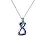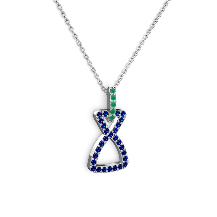 Kök zümrüt ve lab safir 18 ayar beyaz altın kolye (40 cm gümüş rolo zincir)