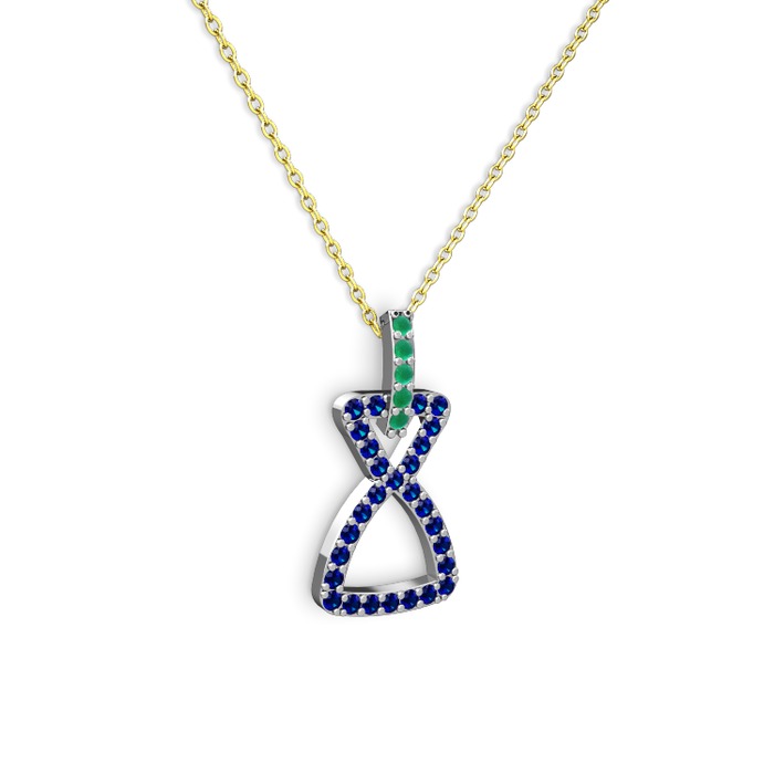Kök zümrüt ve lab safir 8 ayar beyaz altın kolye (40 cm altın rolo zincir)