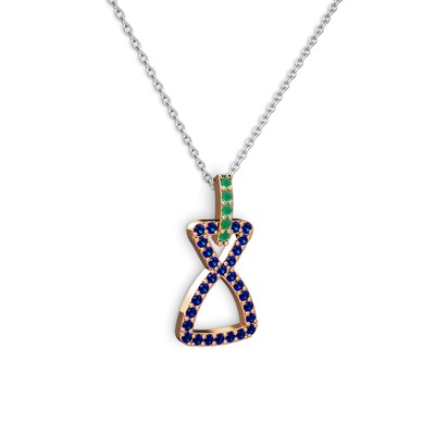 Kök zümrüt ve lab safir 8 ayar rose altın kolye (40 cm beyaz altın rolo zincir)