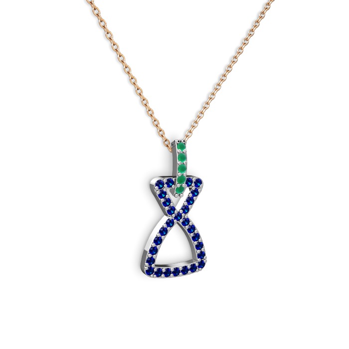 Kök zümrüt ve lab safir 925 ayar gümüş kolye (40 cm gümüş rolo zincir)