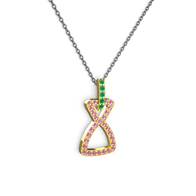 Kök zümrüt ve pembe kuvars 925 ayar altın kaplama gümüş kolye (40 cm gümüş rolo zincir)