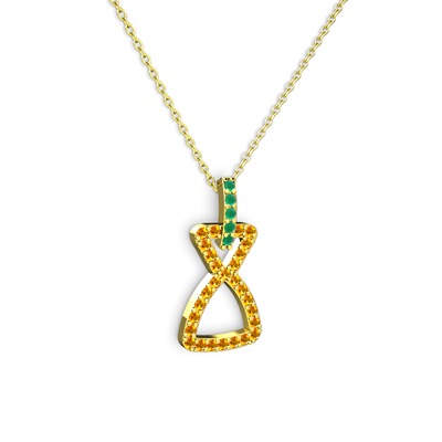 Kök zümrüt ve sitrin 18 ayar altın kolye (40 cm altın rolo zincir)