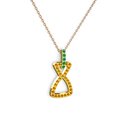 Kök zümrüt ve sitrin 925 ayar altın kaplama gümüş kolye (40 cm gümüş rolo zincir)