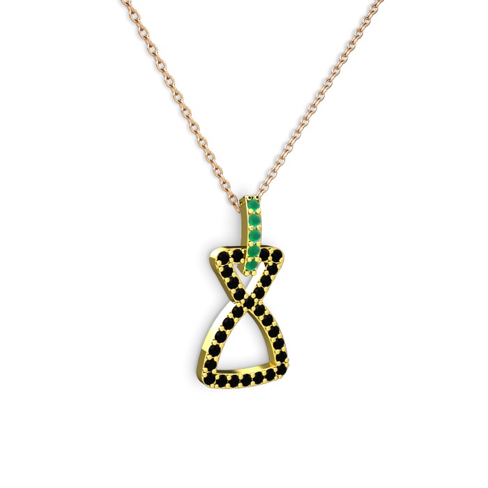 Kök zümrüt ve siyah zirkon 14 ayar altın kolye (40 cm rose altın rolo zincir)
