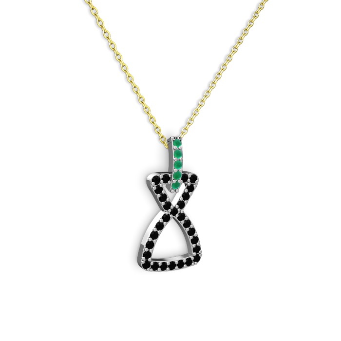 Kök zümrüt ve siyah zirkon 14 ayar beyaz altın kolye (40 cm altın rolo zincir)