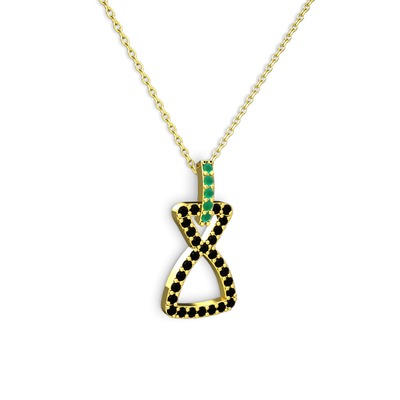 Kök zümrüt ve siyah zirkon 8 ayar altın kolye (40 cm altın rolo zincir)