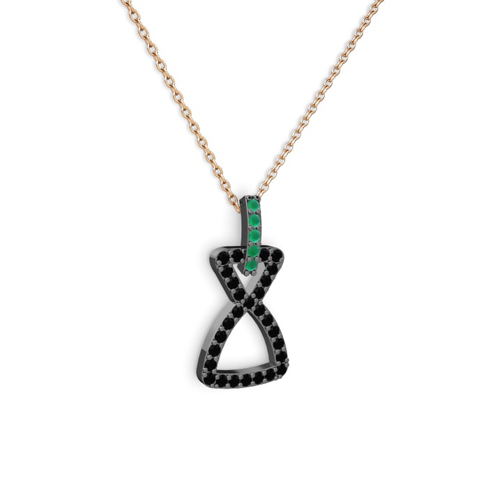 Kök zümrüt ve siyah zirkon 925 ayar siyah rodyum kaplama gümüş kolye (40 cm rose altın rolo zincir)