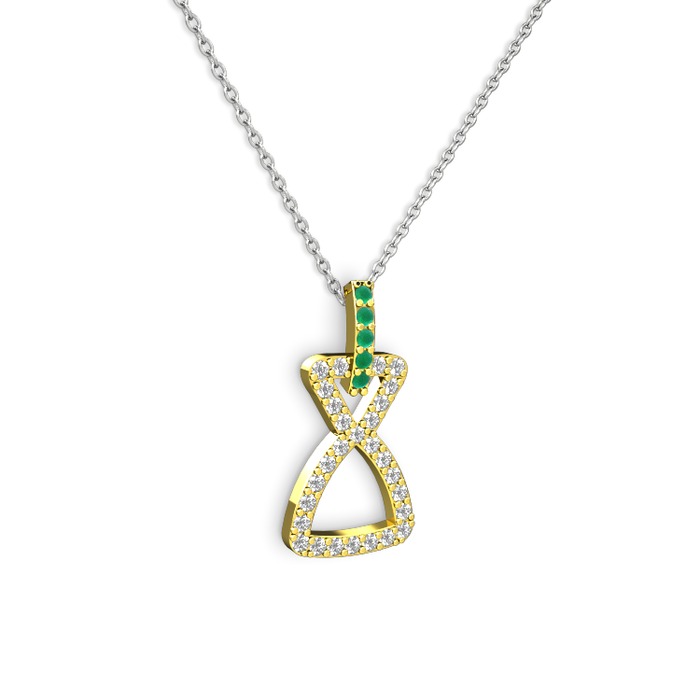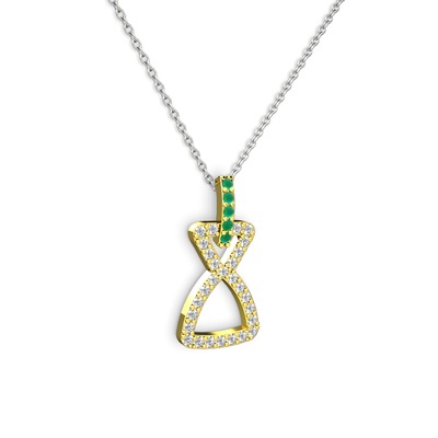 Kök zümrüt ve swarovski 925 ayar altın kaplama gümüş kolye (40 cm beyaz altın rolo zincir)