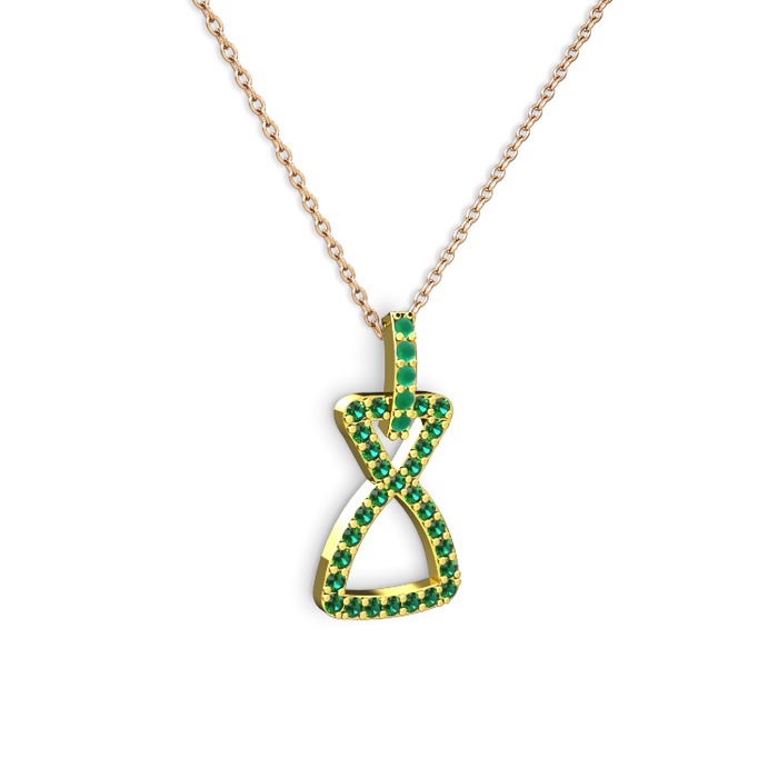 Kök zümrüt ve yeşil kuvars 8 ayar altın kolye (40 cm rose altın rolo zincir)