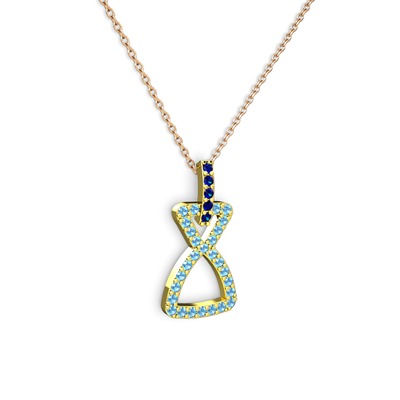 Lab safir ve akuamarin 18 ayar altın kolye (40 cm rose altın rolo zincir)