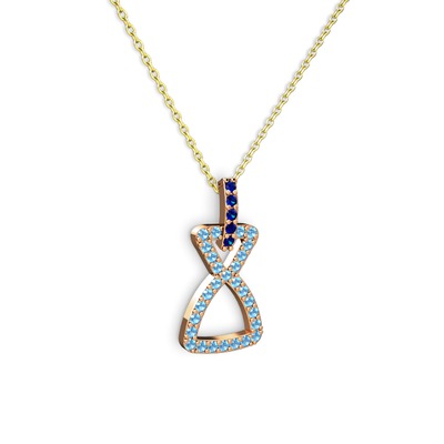 Simla Kolye - Lab safir ve akuamarin 8 ayar rose altın kolye (40 cm altın rolo zincir)