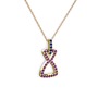 Lab safir ve ametist 14 ayar altın kolye (40 cm gümüş rolo zincir)