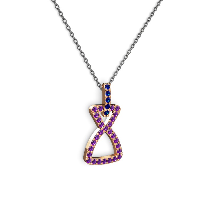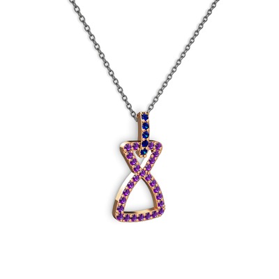 Lab safir ve ametist 14 ayar rose altın kolye (40 cm gümüş rolo zincir)