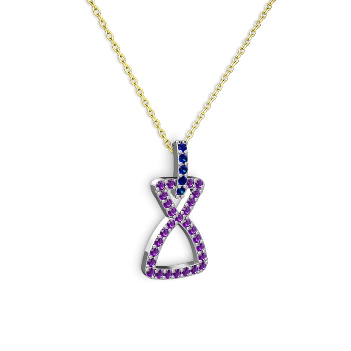 Lab safir ve ametist 8 ayar beyaz altın kolye (40 cm altın rolo zincir)