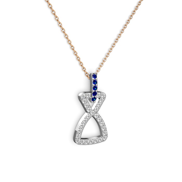 Lab safir ve beyaz zirkon 8 ayar beyaz altın kolye (40 cm gümüş rolo zincir)