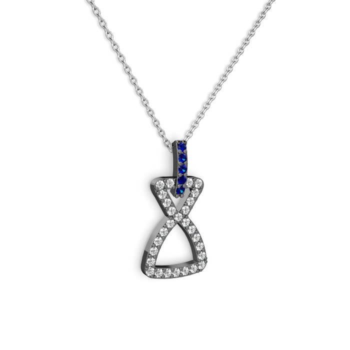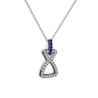 Lab safir ve beyaz zirkon 925 ayar siyah rodyum kaplama gümüş kolye (40 cm beyaz altın rolo zincir)