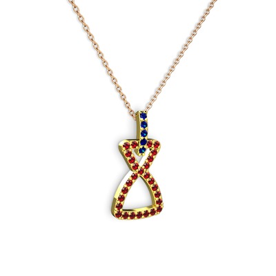 Lab safir ve garnet 8 ayar altın kolye (40 cm rose altın rolo zincir)