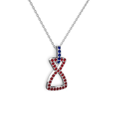 Lab safir ve garnet 8 ayar beyaz altın kolye (40 cm beyaz altın rolo zincir)
