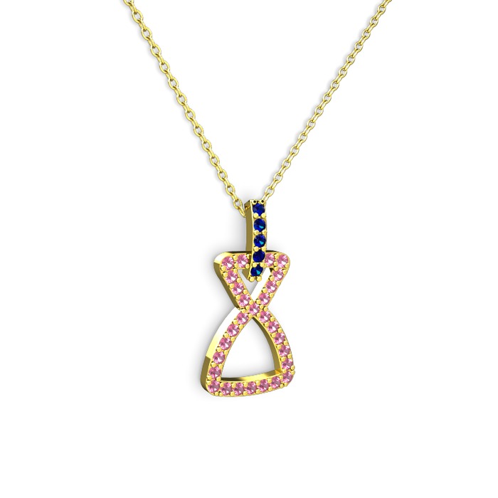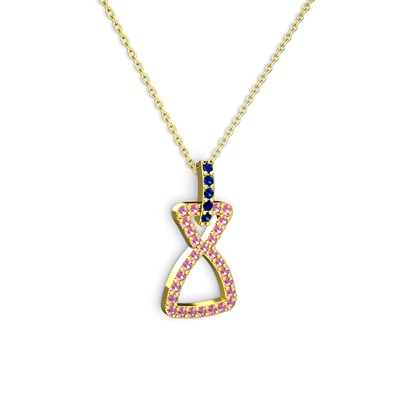 Lab safir ve pembe kuvars 14 ayar altın kolye (40 cm gümüş rolo zincir)