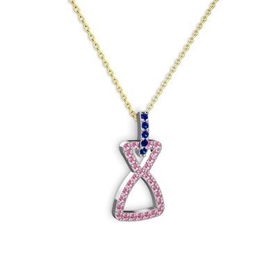 Lab safir ve pembe kuvars 8 ayar beyaz altın kolye (40 cm altın rolo zincir)
