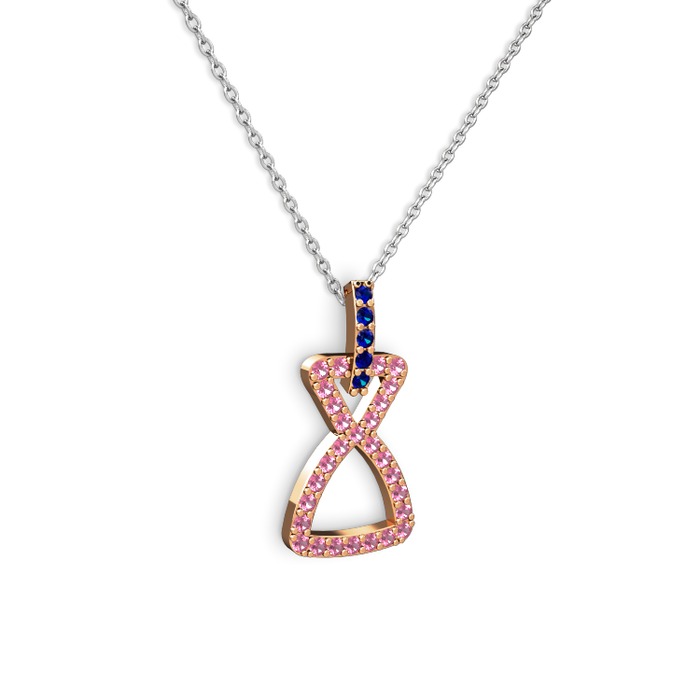 Lab safir ve pembe kuvars 925 ayar rose altın kaplama gümüş kolye (40 cm beyaz altın rolo zincir)