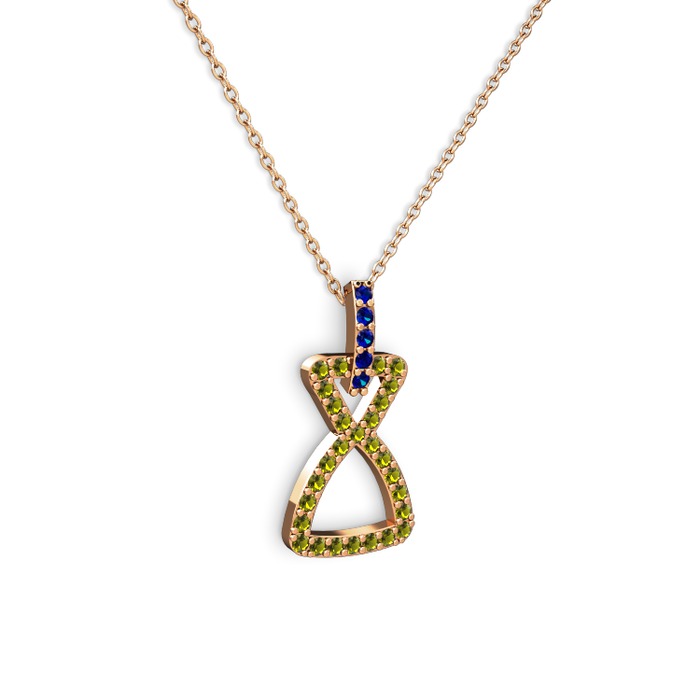 Lab safir ve peridot 8 ayar rose altın kolye (40 cm gümüş rolo zincir)