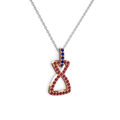 Lab safir ve rodolit garnet 18 ayar rose altın kolye (40 cm gümüş rolo zincir)