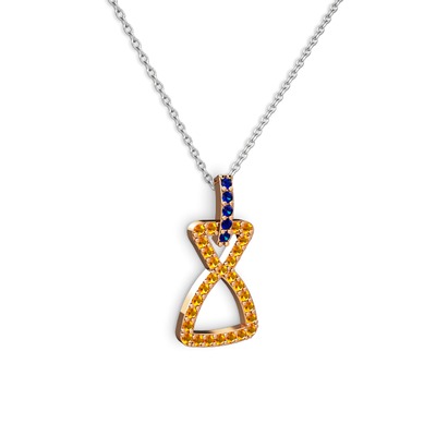 Lab safir ve sitrin 14 ayar rose altın kolye (40 cm beyaz altın rolo zincir)
