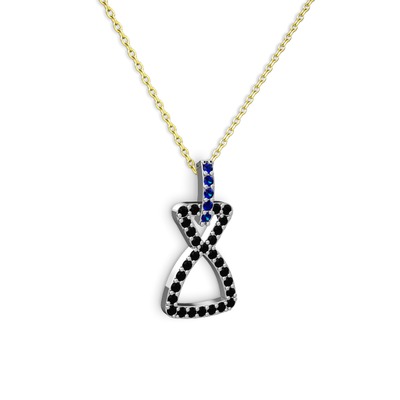 Lab safir ve siyah zirkon 14 ayar beyaz altın kolye (40 cm altın rolo zincir)
