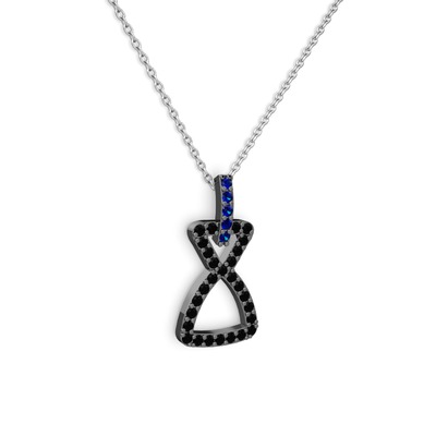 Lab safir ve siyah zirkon 925 ayar siyah rodyum kaplama gümüş kolye (40 cm beyaz altın rolo zincir)
