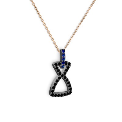 Lab safir ve siyah zirkon 925 ayar siyah rodyum kaplama gümüş kolye (40 cm rose altın rolo zincir)