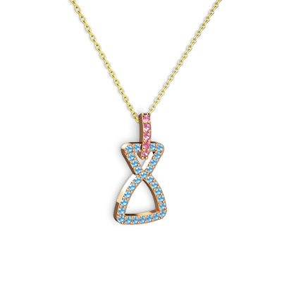 Pembe kuvars ve akuamarin 925 ayar rose altın kaplama gümüş kolye (40 cm altın rolo zincir)