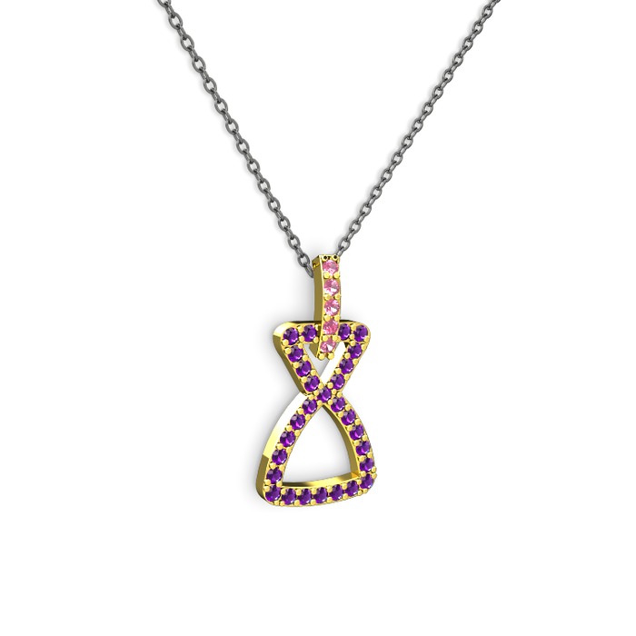 Pembe kuvars ve ametist 8 ayar altın kolye (40 cm gümüş rolo zincir)