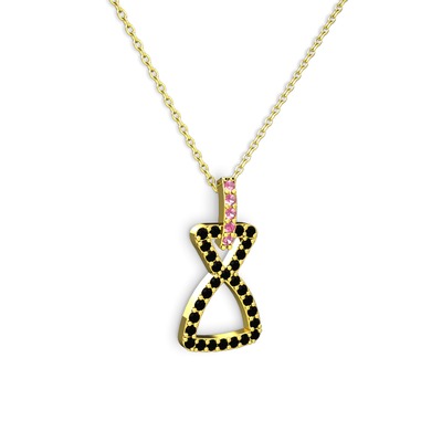 Pembe kuvars ve siyah zirkon 14 ayar altın kolye (40 cm gümüş rolo zincir)
