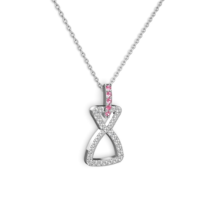 Pembe kuvars ve swarovski 18 ayar beyaz altın kolye (40 cm gümüş rolo zincir)