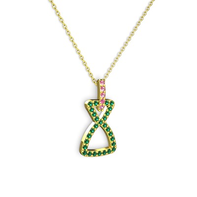 Pembe kuvars ve yeşil kuvars 14 ayar altın kolye (40 cm gümüş rolo zincir)