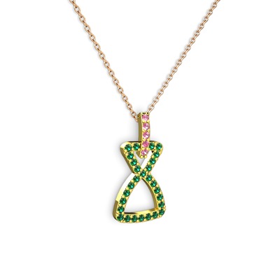 Pembe kuvars ve yeşil kuvars 18 ayar altın kolye (40 cm rose altın rolo zincir)