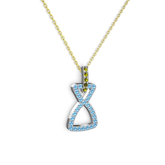 Peridot ve akuamarin 14 ayar beyaz altın kolye (40 cm altın rolo zincir)