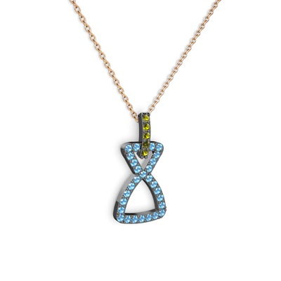 Peridot ve akuamarin 925 ayar siyah rodyum kaplama gümüş kolye (40 cm rose altın rolo zincir)