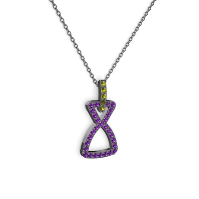 Peridot ve ametist 925 ayar siyah rodyum kaplama gümüş kolye (40 cm gümüş rolo zincir)