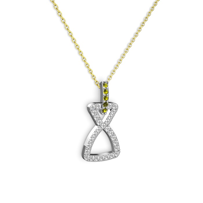 Peridot ve beyaz zirkon 14 ayar beyaz altın kolye (40 cm altın rolo zincir)
