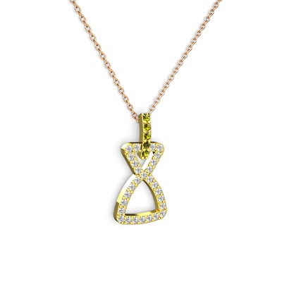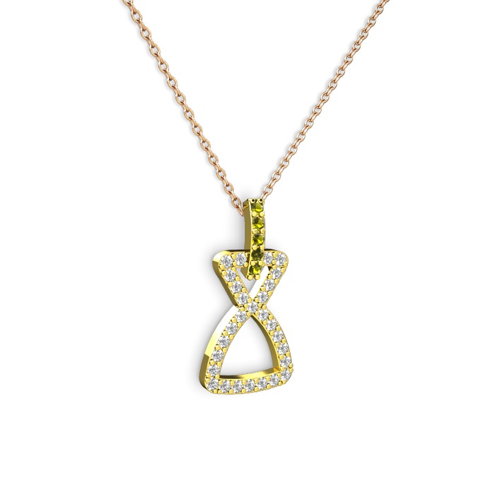 Peridot ve beyaz zirkon 18 ayar altın kolye (40 cm rose altın rolo zincir)