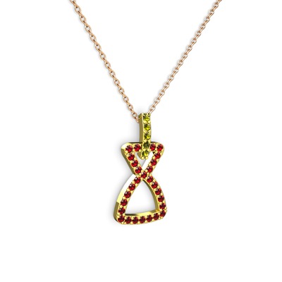 Peridot ve garnet 925 ayar altın kaplama gümüş kolye (40 cm rose altın rolo zincir)