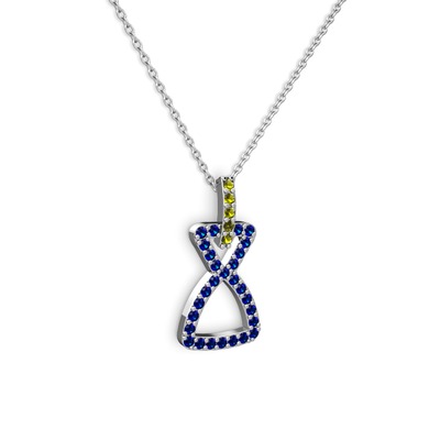 Peridot ve lab safir 925 ayar gümüş kolye (40 cm beyaz altın rolo zincir)