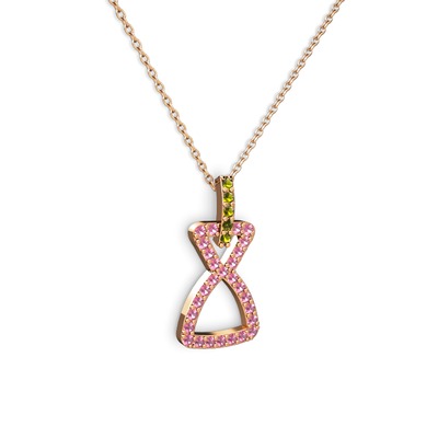 Peridot ve pembe kuvars 14 ayar rose altın kolye (40 cm rose altın rolo zincir)