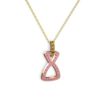 Peridot ve pembe kuvars 8 ayar rose altın kolye (40 cm gümüş rolo zincir)